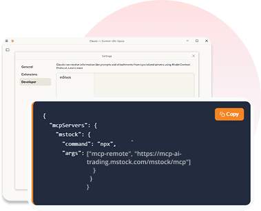 MCP (Model Context Protocol) is a conversational trading interface that gives AI assistants like Claude, GPT, and others secure, real-time access to your m.Stock account — enabling smart analysis, personalized insights, and instant trade execution.